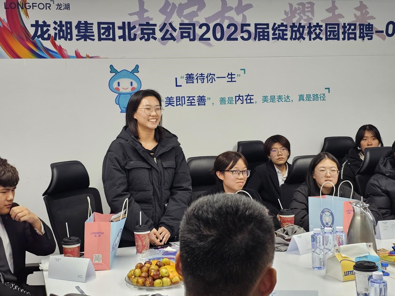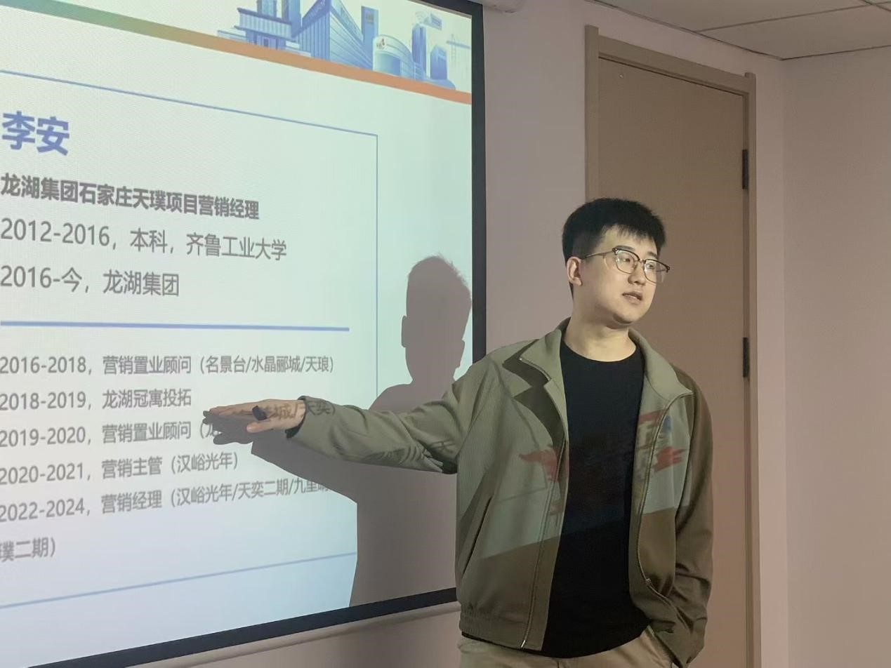 本次访企拓岗活动分为行业认知、对话未来的自己、营销流程深度体验、模拟营销与实战演练四个部分。在张吉的主持下,几位负责人就龙湖集团与集团人才培养项目的基本情况进行了阐释。申晨提道,龙湖集团是一个规模庞大、理念先进、发展多元的世界500强企业,秉持着“善待你一生”的理念,在地产开发、商业投资、资产管理、物业管理、智慧营造五大航道并驾齐驱。“绽放”项目是龙湖集团为了提高企业竞争力,面向应届毕业生的人才发掘培养项目。随后纪文强、李安、孙春斌分别向同学们讲述了自己在龙湖集团的任职经历及工作感悟。在交流互动环节,同学们踊跃发言与提问,相关负责人结合自己的亲身经验对同学们关心的问题进行了详细解答。