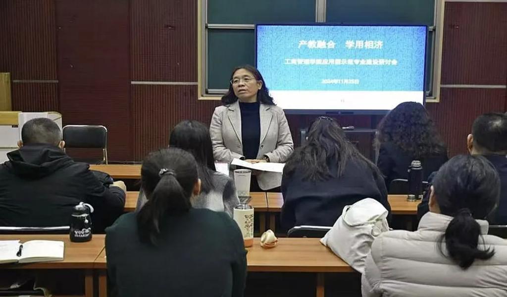 工商管理专业系主任郑展介绍了应用型示范专业建设的工作思路和现有进展。她提出未来应继续在搭建产教融合平台,构筑质量保障体系等方面持续发力,积极探索形式多样、实用性强的实践教学活动,提高学生的实践能力和职业素养。她还就应用型示范专业建设中的几大难点问题如课程共建、案例共建、师资共培、学生共育等方面与参会老师商讨。MBA教育中心执行主任桑银峰表示,在省级应用型示范专业建设过程中,应坚持做好顶层设计,确保建设工作指标与专业建设内涵的合理自洽。