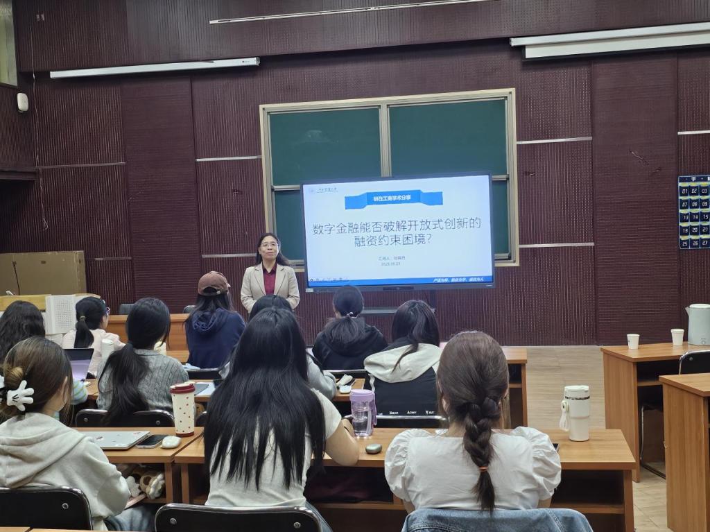 5月23日,研究生学术节系列活动之第四十三期“研在工商”青年学术沙龙于MBA一教室举行,由星空体育官方网站张晓丹博士作题为“数字金融能否破解开放式创新的融资约束困境?”的学术报告。本次沙龙由星空体育官方网站院长李桂荣教授主持,学院青年博士教师及全体学术型研究生参加。