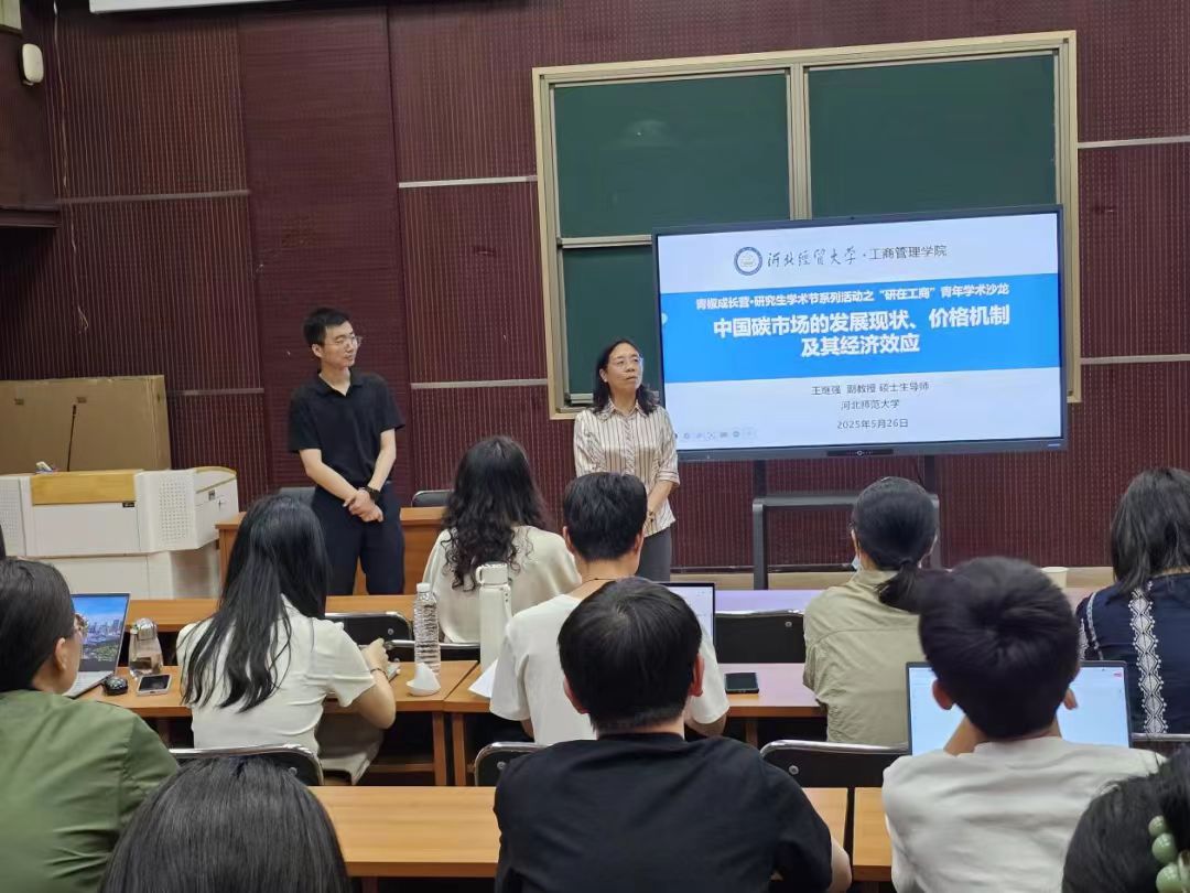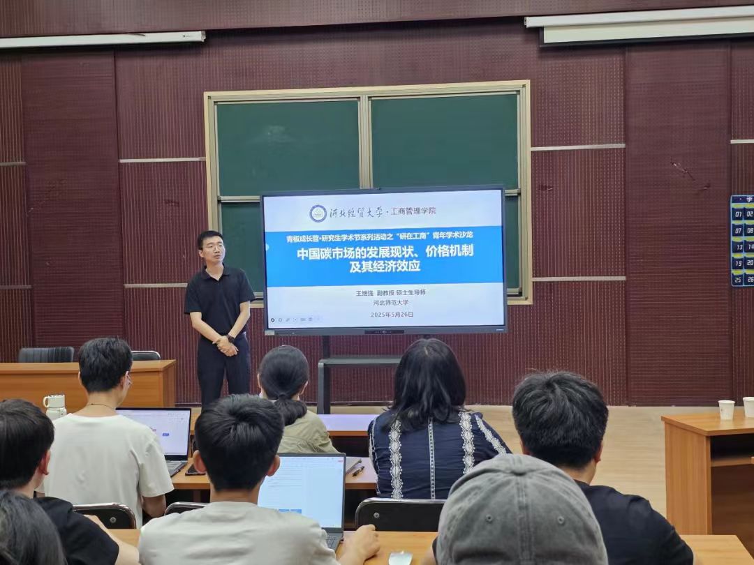 5月26日,青椒成长营·研究生学术节系列活动之“研在工商”科研学术讲座于MBA一教室举行,由河北师范大学商学院王继强副教授作题为“中国碳市场的发展现状、价格机制及其经济效应”的学术报告。会议由星空体育官方网站院长李桂荣教授主持,学院青年博士教师及全体学术型研究生参加。