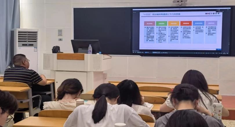 活动伊始,刘益星对鲍入强总经理进行了介绍,随后鲍经理围绕“企业战略编制实务与个体战略思维培养”正式开讲。在讲解过程中他将内容细化为内外部环境分析、战略规划编制、个体战略思维三个部分。重点阐释“十五五”规划编制的六种思维:政治思维聚焦国防、粮食等安全领域,拓展战略省份与国际盟友;存量思维针对建筑业规模触顶现状,提出开拓存量市场、抢占应用场景;战新思维鼓励布局新基建、新能源等新兴产业;创新思维强调科技创新与管理模式革新;全球化思维倡导拓展国际市场;底线思维则要求评估风险、稳健发展。