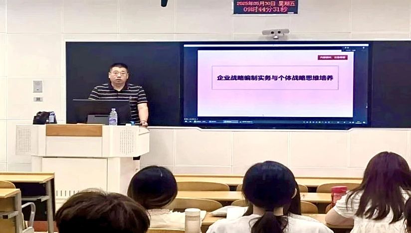 课程最后,刘益星、刘东华两位老师总结发言,感谢鲍经理的专业分享,并鼓励学生将理论知识与实践结合。此次校企共建课堂打破了传统教学边界,为学生搭建了理论联系实际的学习平台,不仅深化了学生对战略管理知识的理解,更培养了其战略思维能力。未来,学院将持续深化校企合作,推动产教深度融合,为学生成长成才提供更优质的教育资源。
