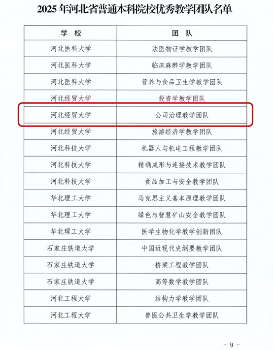 近日,河北省教育厅公布了2025年河北省普通本科院校教学名师和优秀教学团队名单,星空体育官网获优秀教学团队1项。