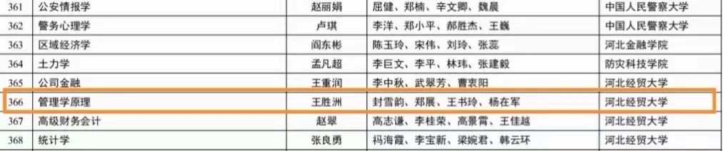 “管理学原理”课程2007年获批省级精品课程,2014年成为校级范式改革课程,2018年获批校级资源共享课程,2019年获批校级“翻转课堂”课程改革试点项目,2019年荣获河北省优秀教学团队称号,2023年获批河北省一流本科课程和河北省课程思政示范课。