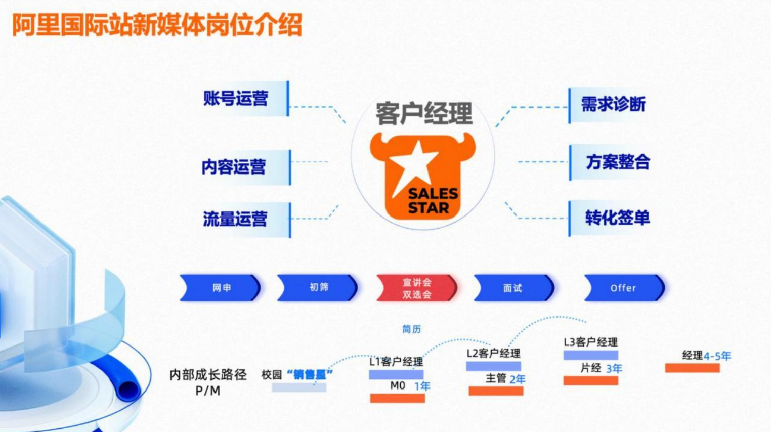 阿里国际站新媒体国际人才项目 (校园星)是由阿里国际内部人才培养项目,正式升级为面向全国高等院校的战略级人才共育项目 。依托阿里巴巴国际站真实产业场景与全球化数字贸易平台资源,联合打造集“实训实习—能力提升—岗位对接—推荐就业”于—体的校园人才发展闭环。