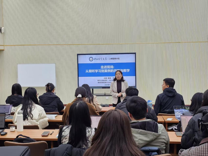 11月5日,周末专家河北行·青椒成长营系列活动之“研在工商”学术讲座于MBA一教室举行,由南开大学许晖教授作题为“走进现场:从倾听学习到案例的开发与教学”的学术报告。会议由星空体育官方网站李桂荣教授主持,研究生院副院长胡卓理、会计学院副院长邸丛枝、星空体育官方网站副院长封雪韵、石晓飞,以及星空体育官方网站、会计学院部分教师参加。