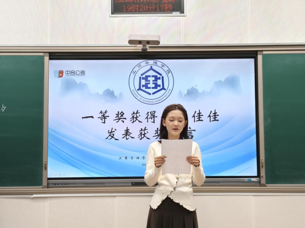 随后由获奖学子代表分享备考心得与参赛感悟,一等奖获得者刘佳佳同学结合自身经历,讲述其在备考过程中的坚持与突破,强调系统规划与心态调节的重要性。通过这次模拟大赛让她更加明晰了前行的方向,在以后的学习生涯中这份经历会激励着她更加向上。