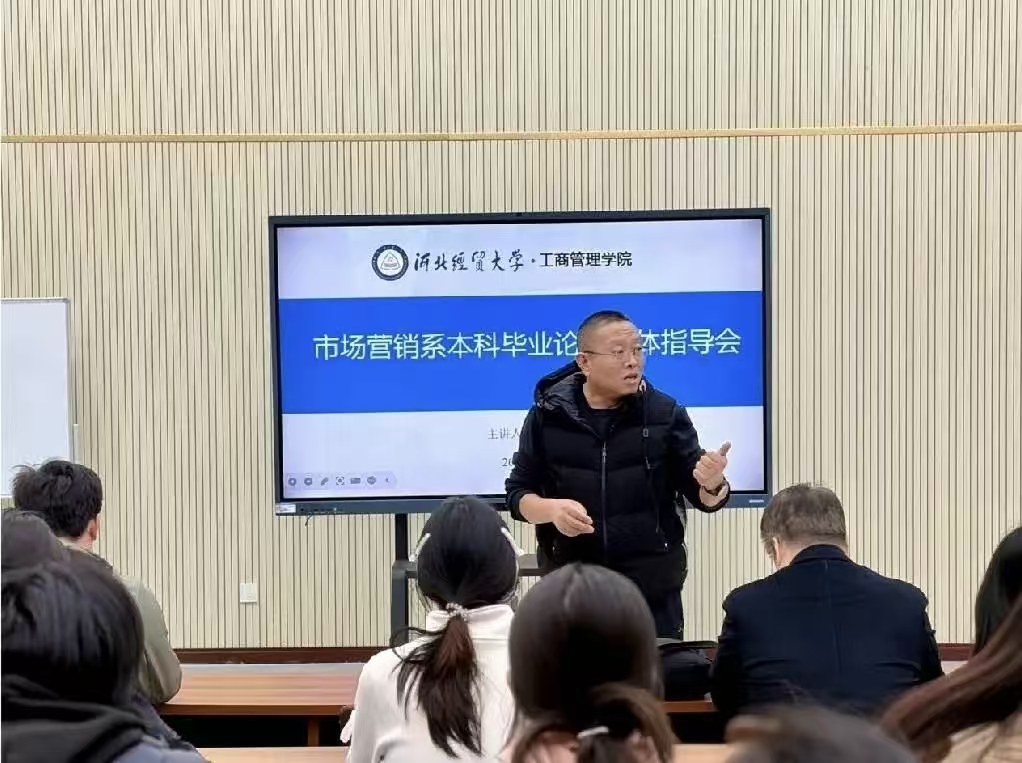 会议伊始,营销系李建州主任首先介绍了参加本次指导会的各位指导教师。他指出,毕业论文是本科阶段的重要学习环节,是学生综合运用所学知识、提升科研能力和创新能力的重要体现。李主任强调,论文写作不仅仅是学术训练,更是思维逻辑、规范意识与独立研究能力的综合展示。