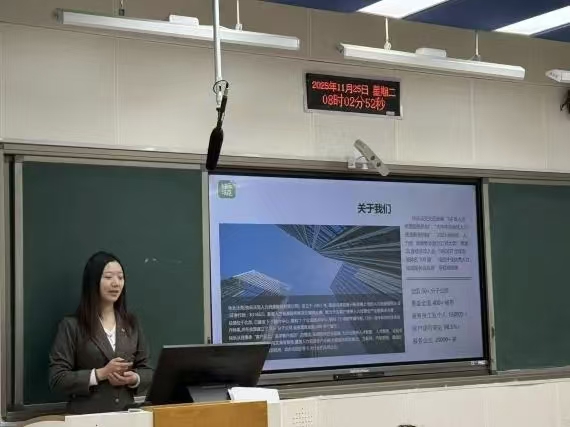 课程伊始,王丽媛老师隆重介绍了快乐沃克公司的业务实力与两位专家的实战履历,为讲座拉开序幕。李晓宇经理率先以“企业招聘现状与实战攻略”破题,简要阐释公司在人才配置、人力外包等领域的核心优势后,结合最新行业数据,精准拆解了当前招聘市场的三大趋势——优先关注技能匹配、重点考察实习经历、广泛运用AI初筛与远程面试,让同学们对招聘实践有了直观认知。
