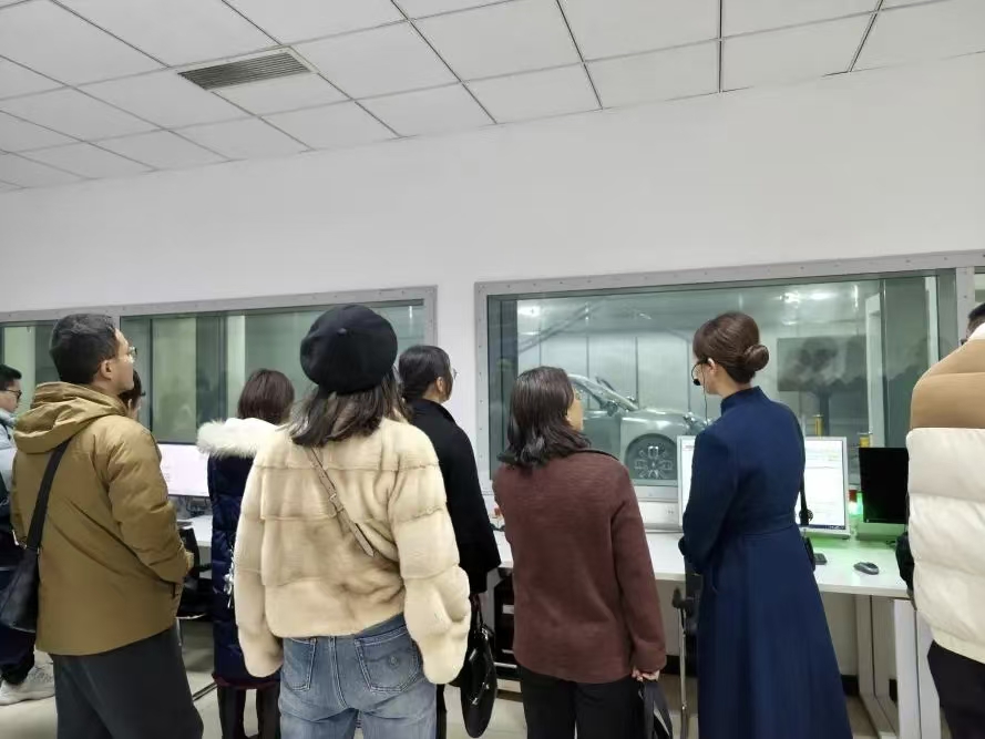 调研首站抵达长城汽车技术中心,团队根据“整车四驱半消音室—环境风洞试验室—长城汽车展厅”的路线展开参观。在整车四驱半消音室,技术人员讲解了NVH测试背后的技术逻辑及其在营造舒适体验中的关键作用,使学生深刻理解产品性能、用户感知和品牌价值的营销链路;在环境风洞试验室,极端环境模拟测试展示了企业对产品可靠性的严格把控,为学生提供了从“技术可信度”“品牌信任构建”的真实案例。