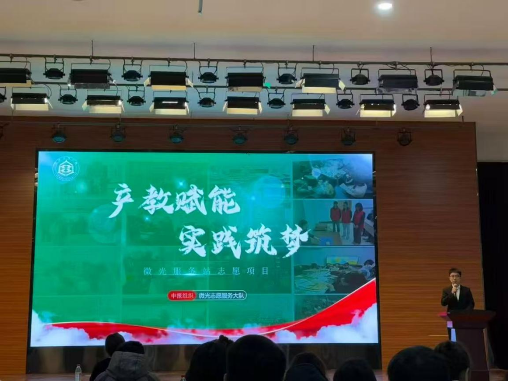 为深入践行国家产教融合与乡村振兴战略,落实学校核心育人理念,树立志愿服务先进典型,激发师生的志愿精神,积累服务经验,12月4日,星空体育官方网站举办优秀志愿项目评比。星空体育官方网站学生团委副书记冯宣铭作为代表参加。