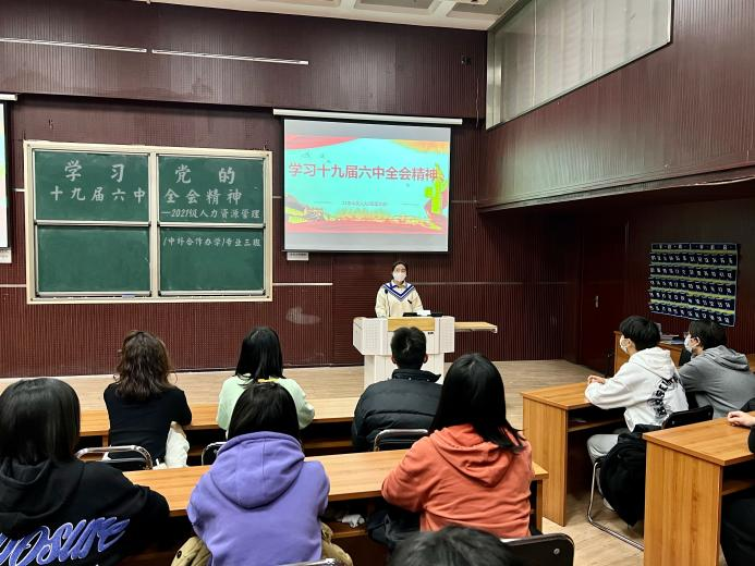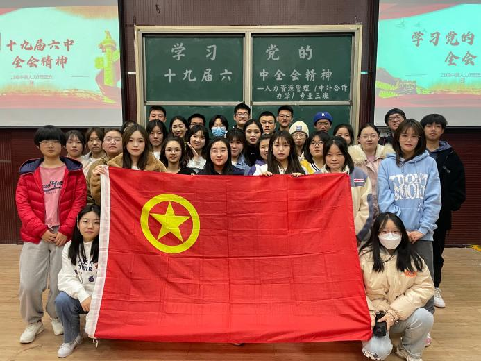 11月29日下午,2021级人力资源管理(中外合作办学)三班在星空体育官网MBA二教室举办“学习党的十九届六中全会精神”主题班会,本次活动由辅导员宋欣策划组织,班长赵晓宇主持,三班全体同学参加。