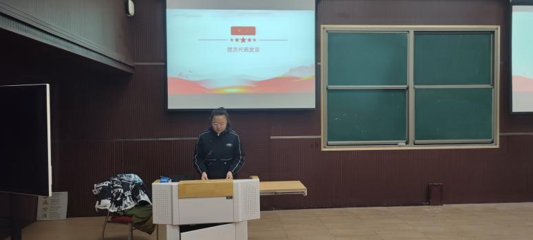 会议伊始,张逸城带领全体同学齐唱团歌,重温入团誓词。紧接着,张逸城向大家讲述《中共中央关于党的百年奋斗重大成就和历史经验的决议》的主要内容,从《决议》的产生背景、重点研究内容、学习把握要点、抓好贯彻落实等四个方面进行了阐释和解读。
