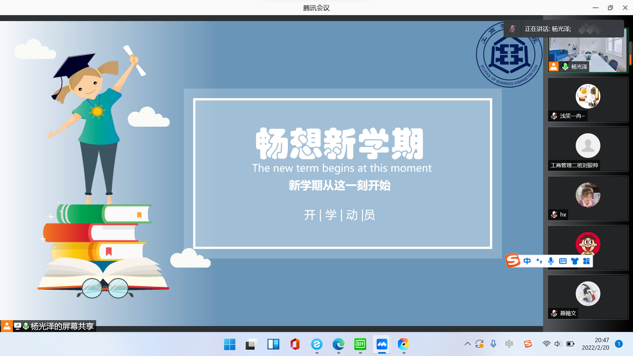 2022年2月20日星空体育官方网站举行以“新学期 新起点”为主题的会议,此次会议由20级工商管理专业一班杨光泽主持,星空体育官方网站党委副书记范伟,团委书记贾晶晶到场,20级工商管理专业、20级人力资源管理专业(中外合作办学)、21级智慧工商管理专业全体同学参加。