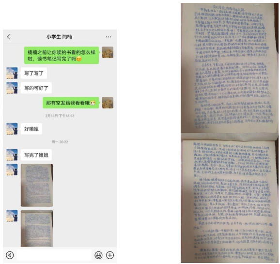 结对小学生经常通过微信的方式与我分享读书过程中的感悟,我发现小朋友读完书后的读书心得十分的有深度,说明读书对孩子的认知发展起到了很大的帮助。在这次活动中,我们建立了非常深厚的友谊,我们成为了非常好的朋友。我相信,通过此次活动,我们在未来看问题的角度会更加的多元化,更能捉住生活中的美好幸福。