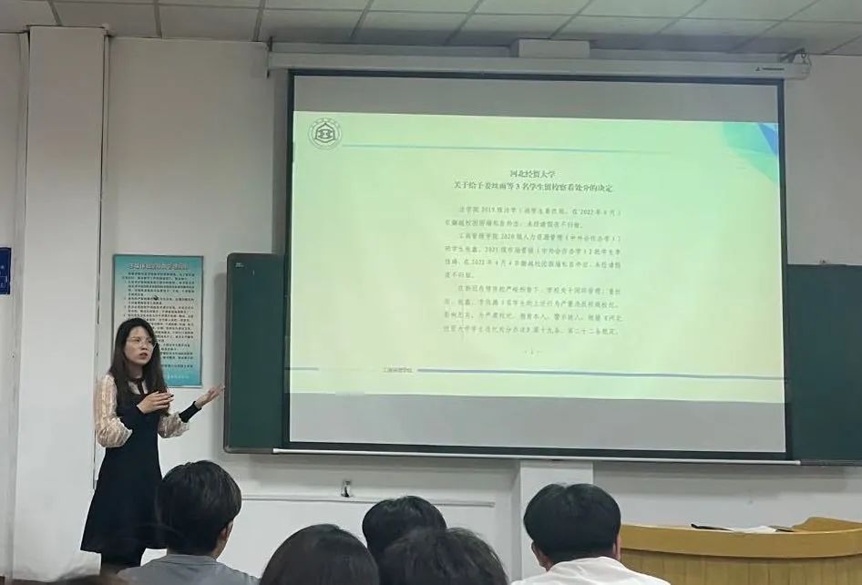 4月9日下午,2021级人力资源管理(中外合作办学)专业于二教205教室举办了“学海无涯勤可渡,规绳墨矩奋前行”主题班会,本次班会由辅导员宋欣策划并主持,2021级人力资源管理(中外合作办学)专业全体同学参加。