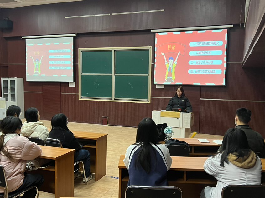 会议伊始,团支书吕雅诗为大家介绍了劳动节的由来和意义,她引导同学们崇尚劳动、尊重劳动,鼓励大家从身边的小事做起,感悟劳动之美。接着,同学们共同学习了习近平总书记关于劳动的重要论断,深入理解了“劳动是人类的本质活动,劳动光荣、创造伟大是对人类文明进步规律的重要诠释”。最后,大家通过学习劳动模范事迹,深刻领悟了劳动模范精神,团支书吕雅诗启发大家多多关注身边的辛勤劳动者,深切感受老师、父母的辛苦工作。大家纷纷表示要积极投身到劳动实践中去,树立创新劳动观念,领会并传承劳动实干精神,为实现中国梦贡献青春力量!