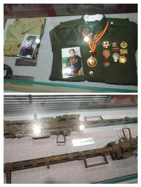 展馆陈列物伴随着解说员的指引,我们来到了四野战史展厅,墙上有战士们奋力抗敌的壁画,有战略指挥图和地形图,有各位元帅、将军的照片姓名;展柜中整整齐齐摆放着将士们的军衣功勋、奖章以及用过的枪支,罗列着战士们在作战过程中用到的器械和手书;展台中央的石碑上刻着“运筹帷幄,决胜千里”几个大字,这是对战士们英勇奋战,有勇有谋最好的诠释。置身于第四野战军纪念馆中,你会感觉到由自脚下块块青砖的古朴以及映入眼帘一木一瓦的典雅。建筑本身是美的,更重要的是,在惊天地泣鬼神的解放战争中,作为前线指挥部的这里曾经上演过永载史册的动人篇章。作为那场波澜壮阔解放战争的见证,第四野战军纪念馆向人们诉说那个时代的故事。