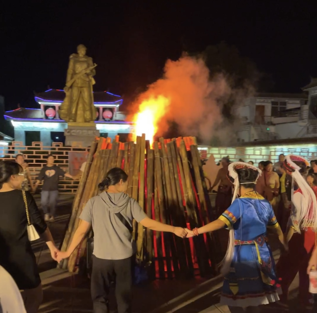 我们一进到古城,就被广场上的舞姿吸引了。升腾的火焰、欢快的音乐瞬间点燃了大家的激情,游客在当地群众的热情邀请下很快加入进来,大家围绕着篝火,和着音乐的节拍,手拉着手,欢快的跳起来。篝火晚会期间还为大家举行了白族三道茶表演。白族三道茶一苦二甜三回味,是招待贵客的礼仪,也是被联合国教科文组织列入人类非物质文化遗产代表作名录的项目之一。白族三道茶的展示,不仅对大家的到来表达了欢迎,还向游客展示了非遗文化,让我们了解白族祖先的智慧。