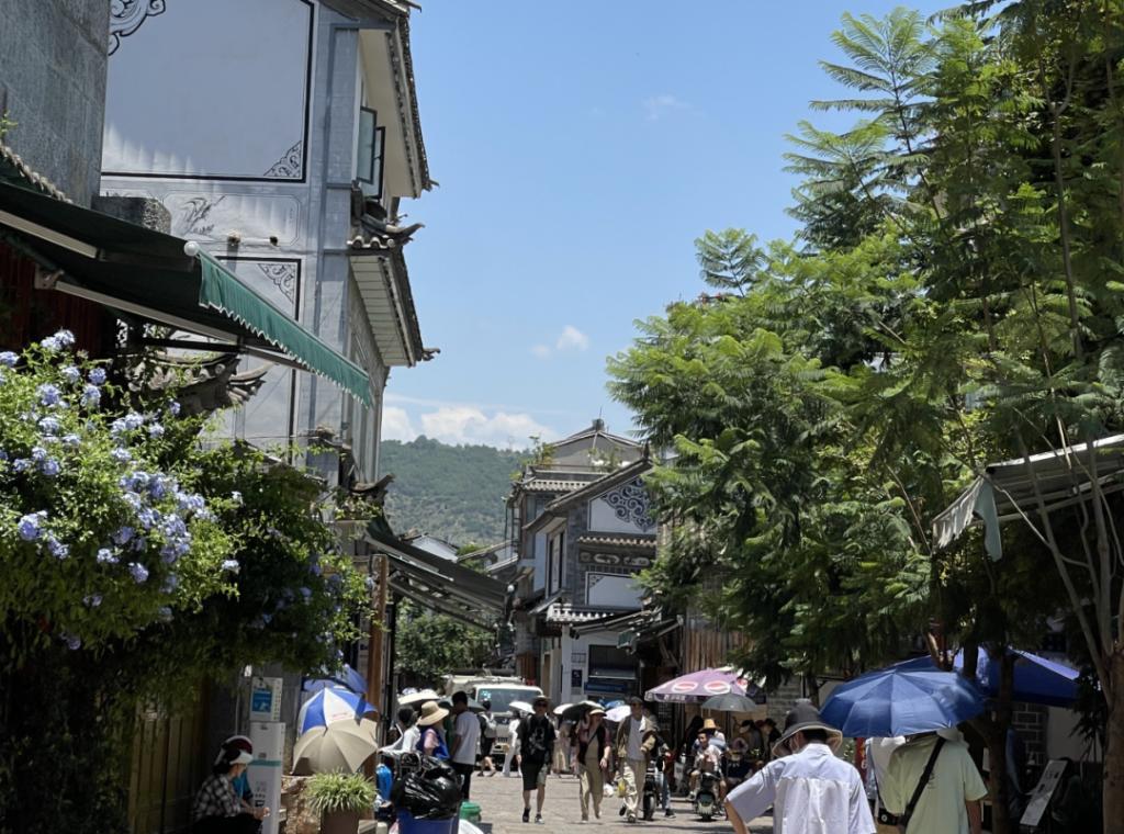 我们对古镇内的当地居民进行了采访,询问他们在现在的日常生活中还保留着哪些白族传统民俗。一位老奶奶表达了她的观点,从古至今,白族人无论男女都推崇白色,以白色为尊。此外,他们还坚守着禁止同宗同姓通婚的传统,对到访的客人十分热情好客,以“三道茶”款待也是他们的传统待客之道。这些生活在大理自治州的白族人,他们以自豪的身份传承并弘扬着这些宝贵的传统,为世代相传的白族文化增添了厚重的历史意义。