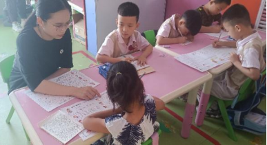 我的主要工作包括辅助幼儿园老师上课,课间陪孩子玩耍以及作业辅导等。起初,我刚到幼儿园实习的时候,面对成群的孩子们,我空有满腔的热情却束手无策。在幼儿园老师的指导下,我知道首要解决的问题是拉近和孩子们之间的距离,让他们能够从内心深处的接受自己,愿意亲近自己,这对我之后实习工作的开展会有很大的帮助。于是,我想方设法地走近孩子们的世界,跟他们一起玩耍,摸清他们每个人的秉性,在我的努力下,我渐渐地能和孩子们待在一起了,他们也不像在最开始的时候那么排斥我了。