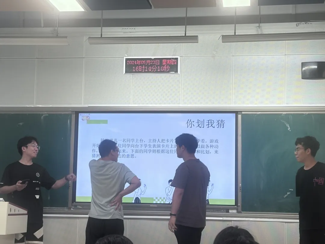 班会在轻松愉快的氛围中拉开帷幕。李润菲同学首先强调了心理健康的重要性,引导同学们关注自己的心理状态。随后,通过生动有趣的游戏体验和互动讨论,同学们深入了解了常见的心理问题及其应对方法。在游戏环节中,同学们积极参与,分享自己在学习和生活中遇到的心理困惑和应对经验,分享自己的喜怒哀乐四种表情。之后大家进行了你划我猜小游戏,游戏氛围轻松愉快,现场气氛十分热烈。活动结束后辅导员王晓东的讲话进一步加深了同学们对心理健康的认识。王老师鼓励同学们在日常生活中要学会自我调节,保持积极乐观的心态,拒绝内耗,遇到问题及时寻求帮助。