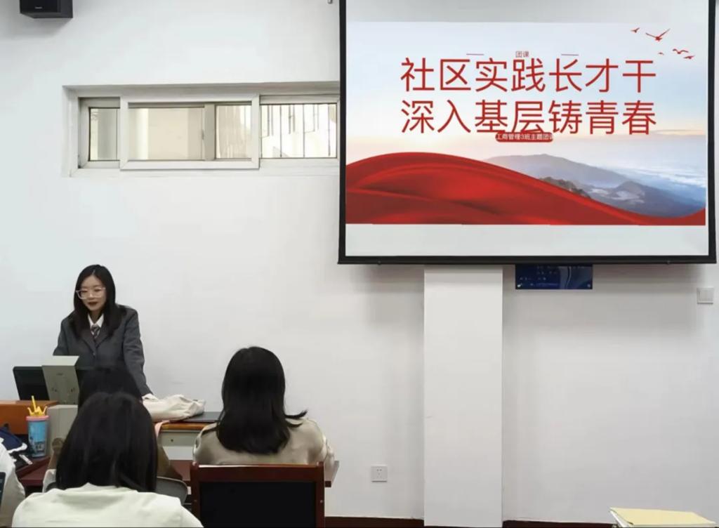 为引导学生走出课堂,深刻地了解社区基层,增强社会责任感和实践能力,积极投身于社会实践,11月18日,2023级工商管理专业三班团支部召开以“社区实践长才干,深入基层铸青春”为主题的团日活动。本次活动由团支书刘宣妤主持,工商管理专业三班全体同学参加。