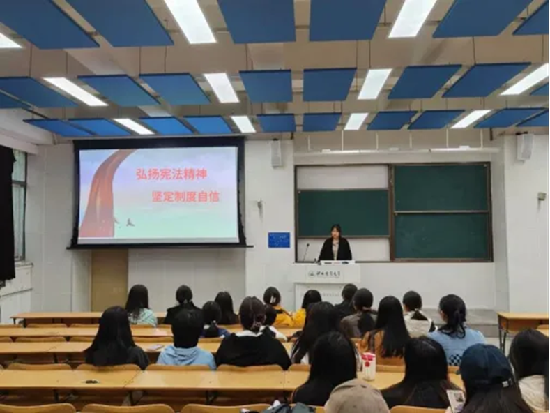 为纪念国家宪法日,深化学生对国家根本大法的理解,树立宪法意识,厚植法治信仰,培育法治思维,推动法治实践,12月5日,2023级工商管理专业二班团支部组织开展了以“弘扬宪法精神,坚定制度信念”为主题的团日活动。本次团日活动由团支书朴宝恩主持, 辅导员赵靓丹出席,2023级工商管理专业二班全体同学参加。