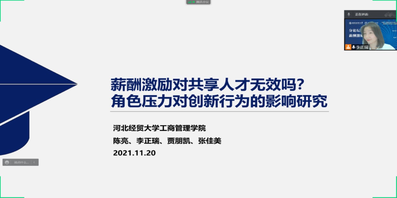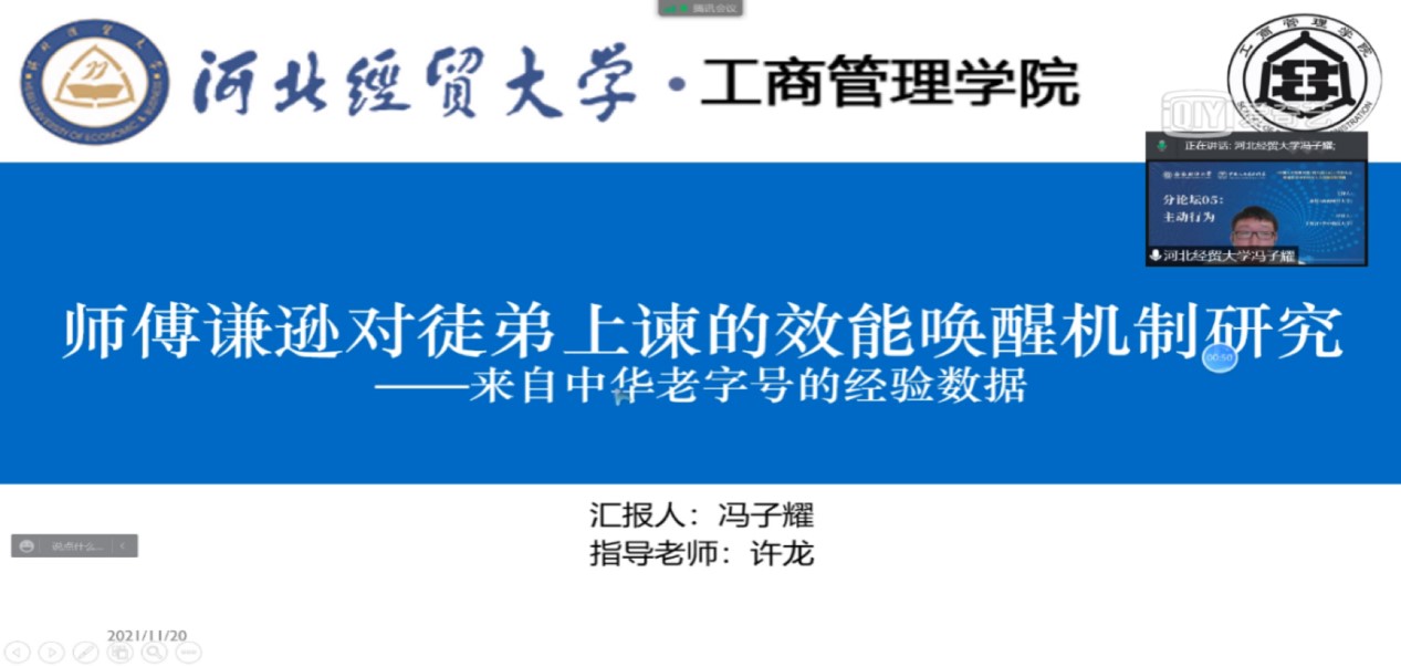 11月20日,由中国人力资源开发研究会和西南财经大学星空体育官方网站联合举办的《中国人力资源开发》第六届(2021)学术年会在腾讯会议上如期举办,星空体育官方网站五名研究生论文入选并进行论文汇报。