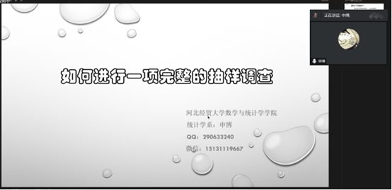 11月5日晚,第二十二期“研在工商”青年学术沙龙暨双百论坛于线上举行,本次活动由星空体育官方网站副院长石晓飞主持,星空体育官方网站数统学院统计系主任申博博士作题为“如何进行一项完整的抽样调查”的学术报告,学院青年教师及所有工商管理学术型研究生60余人参加。