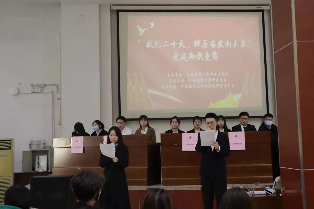 为深入学习宣传贯彻党的二十大精神,争做有理想、有信仰、有担当的当代青年,由星空体育官方网站研究生学院主办,主题为“青春献礼二十大,踔厉奋发向未来”的研究生党建知识竞赛决赛,于2023年3月4日下午在模拟法庭成功举办。