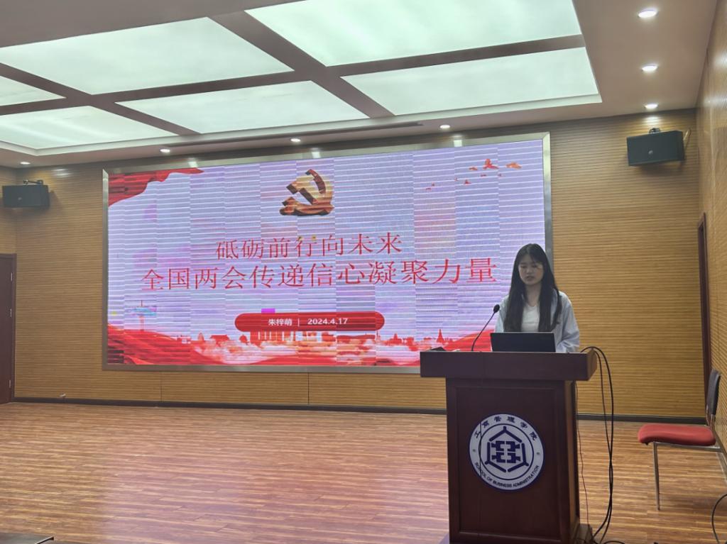 2023级工商管理专业研究生朱梓萌主讲本届第十一期微党课,主题为“砥砺前行向未来,全国两会传递信心凝聚力量”。朱梓萌在本期微党课中带大家回顾了2023年国家工作,领悟两会重要指引。首先,全国两会是集中反映和深入践行全过程人民民主的重要平台,两会上代表委员听人民心声,谋发展大计,牢牢把握高质量发展这个首要任务,因地制宜发展新质生产力。其次,在世界经济复苏乏力、地缘政治冲突加剧的外部环境和国内经济恢复发展缓慢、长期积累的深层次矛盾加速显现的内部环境下,我国各方共同努力,不仅实现了全年预期发展目标,还在经济、生产、科技、改革等方面出现积极向好变化。最后,她重点阐释了两会的指引,要牢牢把握高质量发展这个首要任务,因地制宜发展新质生产力,进一步谋划全面深化改革,统筹推进科技创新和产业创新;要掌握网络强国的创新主动权,实现自立自强、技术创新,从容应对各种网络安全威胁,以网络强国建设助力中国式现代化;要抓住机遇、脚踏实地,努力以自身工作的确定性应对形势变化的不确定性,稳步实现既定战略目标,满怀信心保持定力,沿着正确道路前进。