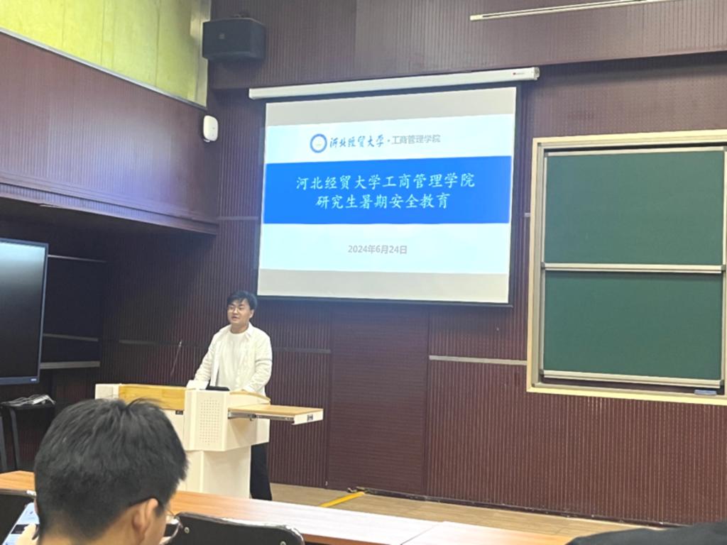 辅导员李建林老师首先要求同学们按照学校要求,做好留校登记,严格遵守请销假制度。接着,从离校前、离校中、离校后三个方面对研究生进行了安全教育,着重强调学生在离校前要保持宿舍环境整洁、注意用电安全、防范极端天气灾害;离校途中注意交通安全,确保平安到达目的地;离校后加强个人防护,保障好人身安全、财产安全、网络安全。特别强调了防范诈骗的重要性,告诫学生要注意保护个人信息,警惕各类电信诈骗和网络诈骗。暑假是溺水事故多发期,日常要多注意预防溺水、规避危险水域、切勿私自下水,时刻谨记预防溺水的重要性,意识到安全无小事,生命大于天。