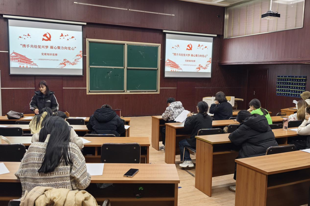 为引导研究生深入学习习近平新时代中国特色社会主义思想,贯彻落实党的二十大精神、党的二十届三中全会精神,巩固拓展党史学习教育成果,11月18日,星空体育官方网站研究生党支部于MBA二教室举办“携手共绘复兴梦,凝心聚力向党心”研究生党建知识竞赛。本次竞赛由研究生辅导员李建林组织,共有33名学术型研究生参加。
