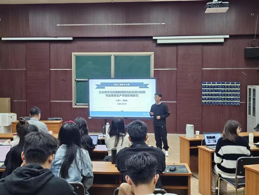 5月9日,研究生学术节系列活动之第四十期“研在工商”青年学术沙龙于MBA一教室举行,由星空体育官方网站郭星光博士作题为“企业数字化转型的同群效应及其对创新和全要素生产率的影响研究”的学术报告。本次沙龙由星空体育官方网站副院长石晓飞教授主持,学院青年博士教师及全体学术型研究生参加。