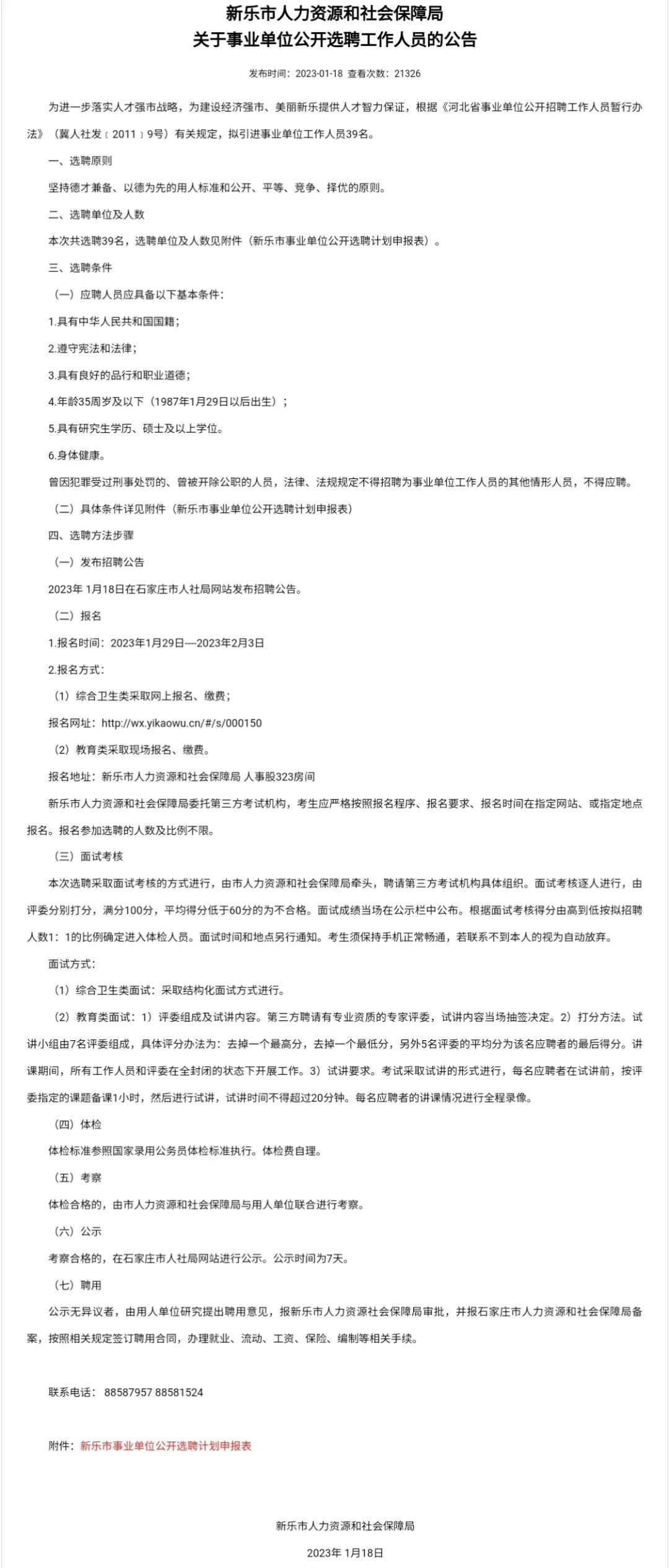 报名地址:新乐市人力资源和社会保障局 人事股323房间