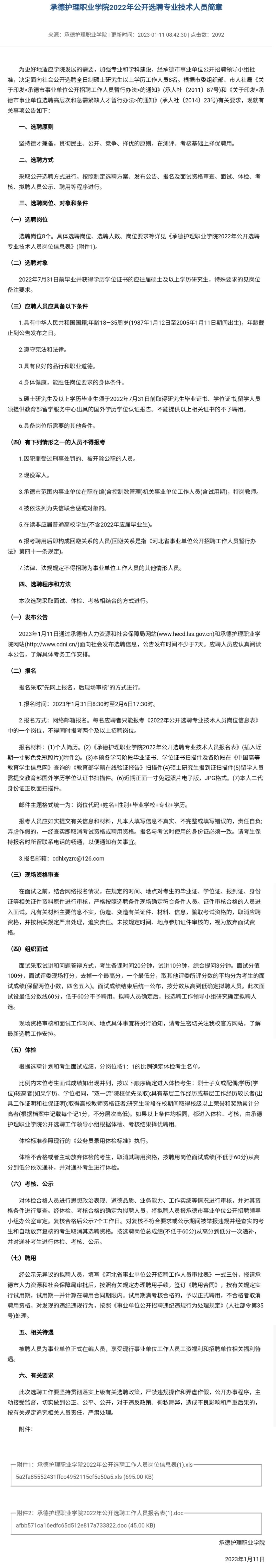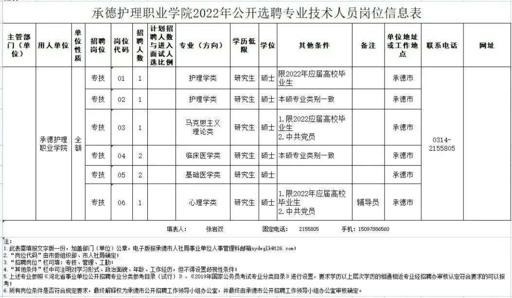 承德护理职业学院选聘岗位8个。具体招聘人数和岗位条件详见↓↓↓