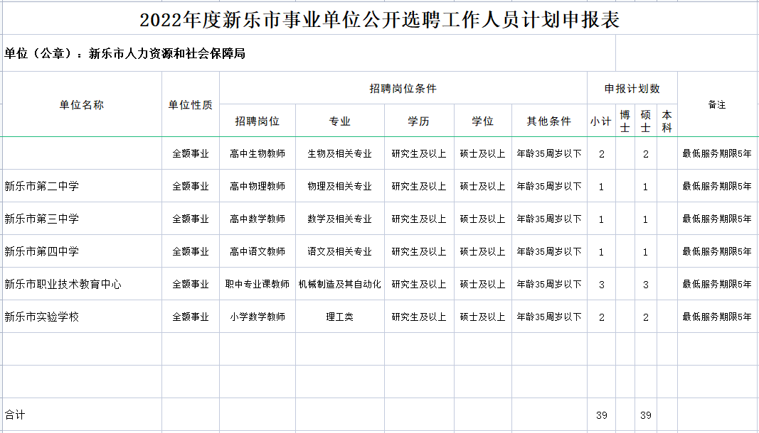 新乐市事业单位公开选聘工作人员39名。具体招聘人数和岗位条件详见↓↓↓