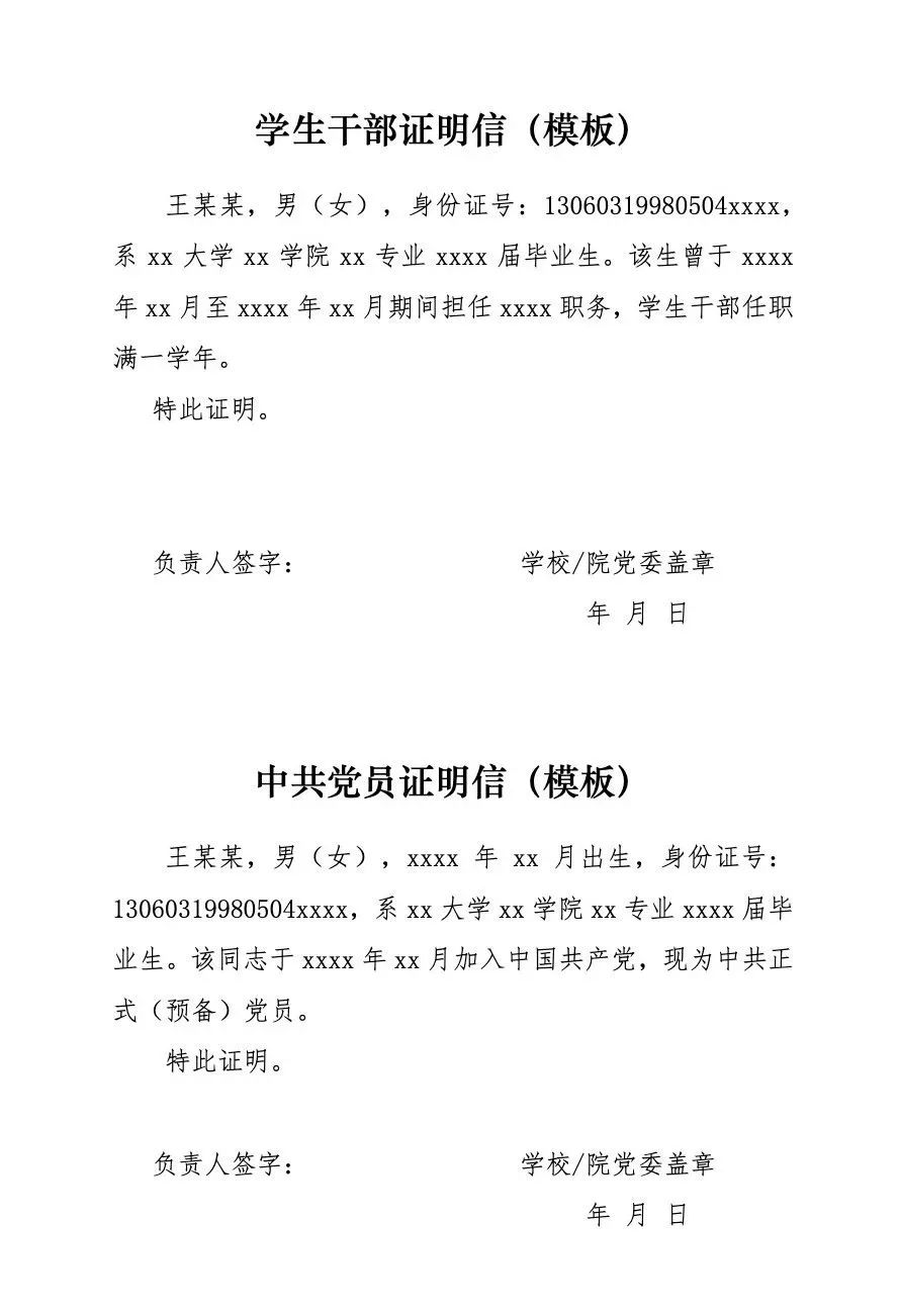 2.学生干部经历、中共党员证明信规定格式及表述模板