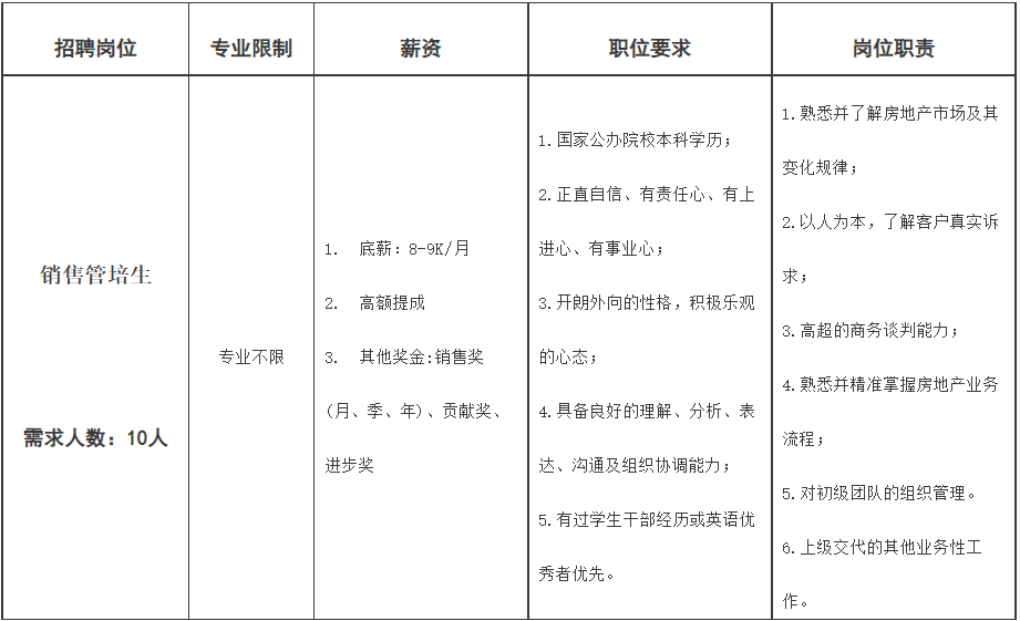 我们有着全员公办院校二本以上学历的专业的员工团队,在此基础上,公司提供房地产界最专业的职业培训,分为认知培训、专业理论培训和技能培训,切实为入职新员工顺利进入岗位角色保驾护航。