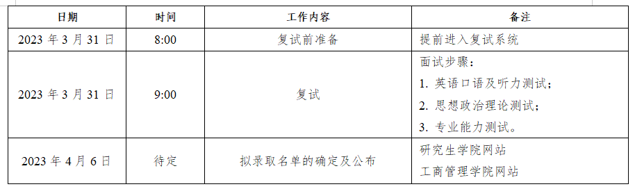 进入复试考生,需按时参加面试。缺考者取消复试录取资格。具体环节及规定如下: