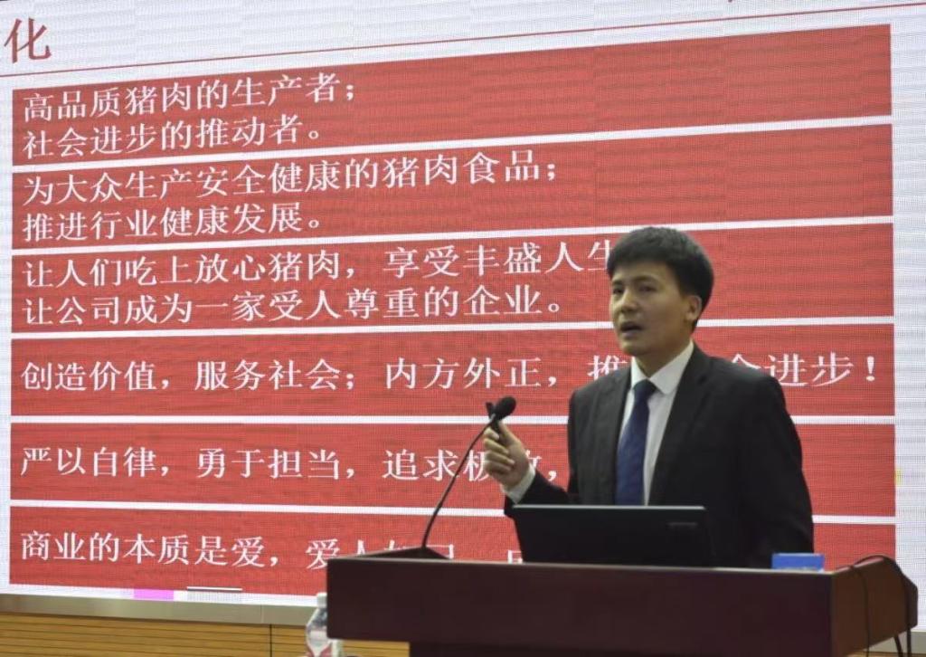 活动伊始,牧原集团人事经理周晓鹏围绕智能化的农牧产业链,通过企业宣传片向学生展示了从育种到加工的现代化生产场景,他结合具体案例,详细介绍了牧原集团的人才培养体系与职业晋升路径,并分享了往届管培生在集团成长故事和薪资待遇,引起学生们的浓厚兴趣。
