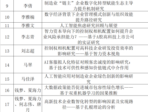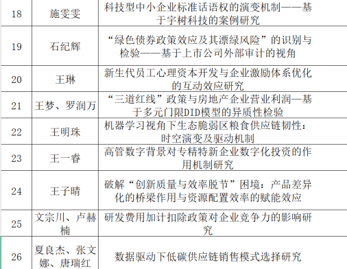 星空体育官方网站第五届“研在工商”研究生学术论坛(2025)自2025年10月12日起公开征集学术论文,至2025年11月21日止,共征集到论文53篇。经专家审阅和专业评审团队讨论,有30篇论文入选本届论坛。现公布入选论文: