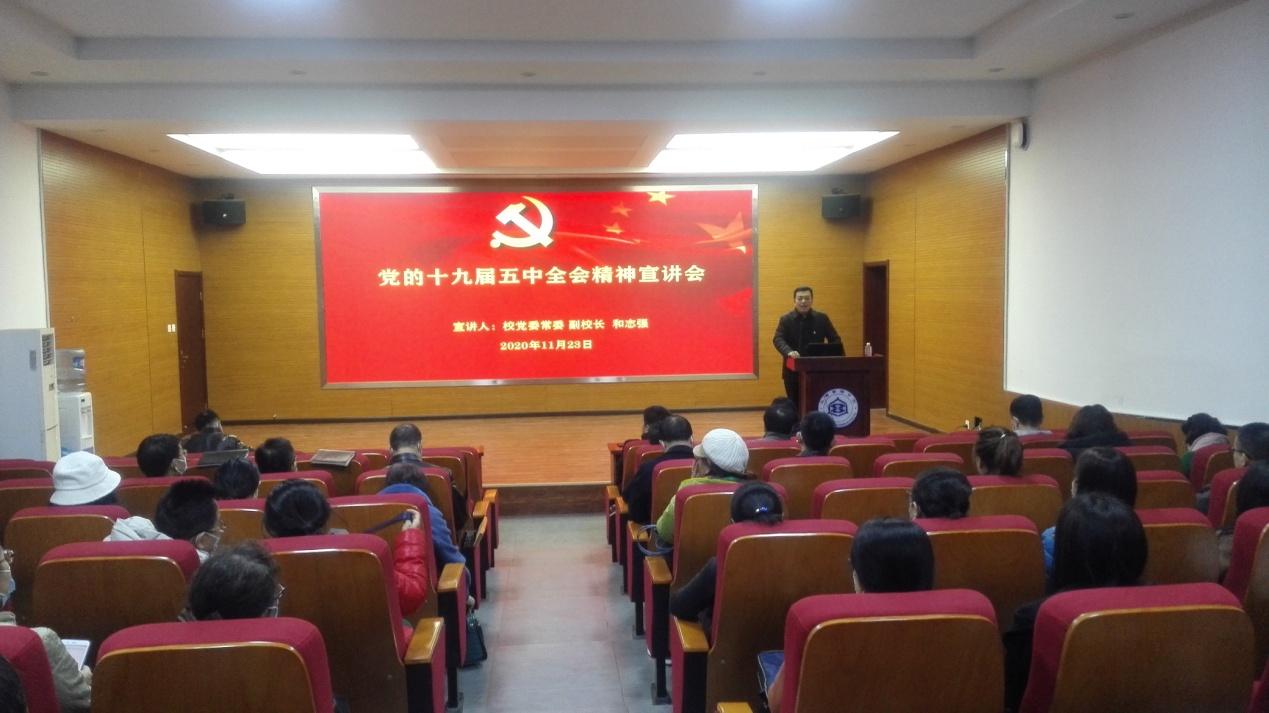 11月23日下午,校党委常委、副校长和志强到星空体育官方网站宣讲党的十九届五中全会精神,科研处、学科办、研究生学院、国际交流与合作处、国际教育学院、中东欧国际商务研修学院等部门班子成员,星空体育官方网站、数学与统计学院全体教师党员以及和志强联系班级19级市场营销2班全体同学参加。星空体育官方网站党委书记赵国峰主持宣讲会。