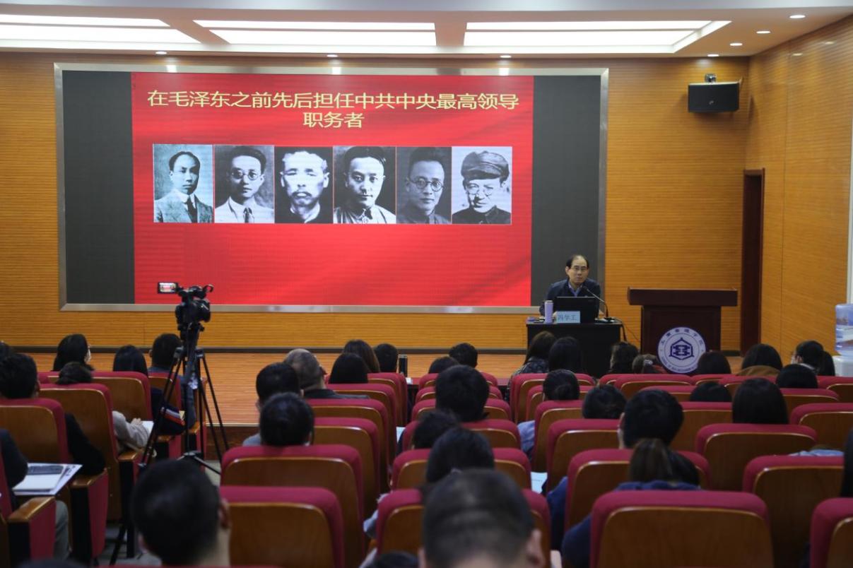 冯学工教授首先系统地讲述了中国共产党的诞生和创建历史,继而从新民主主义革命时期、社会主义革命和建设时期、改革开放和现代化建设时期三个部分,介绍了中国共产党走过的光辉历程。报告逻辑清晰、史料丰富,感染力强,赢得了在场师生的阵阵掌声。