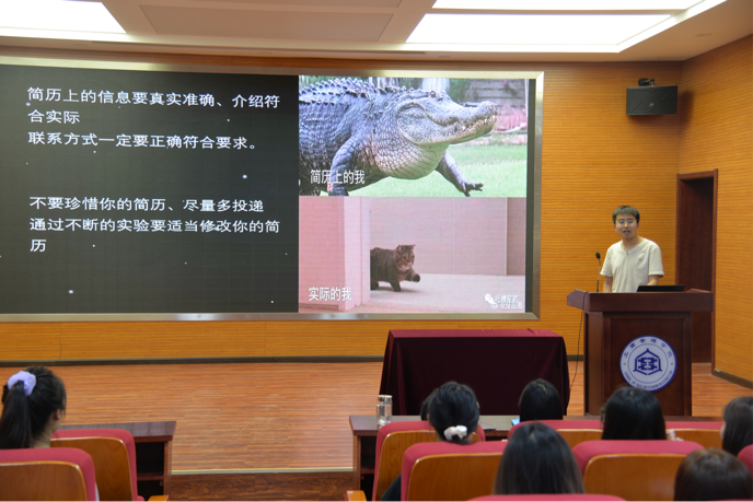 2017级人力资源管理(中外合作办学)二班边天琪和2017文化产业管理一班柳茜从考研动机、考研择校、考研建议等方面分享考研经验,并鼓励学弟学妹们明确自身定位,努力学习知识,为考研做好充分准备。2017级文化产业管理一班王洁和范亚男,围绕职业定位与规划、职业准备与努力、实战之校园招聘等要点分享就业经验,建议同学们充分利用大学时光,苦练本领、发挥优势,争取在新时代就业浪潮中脱颖而出。