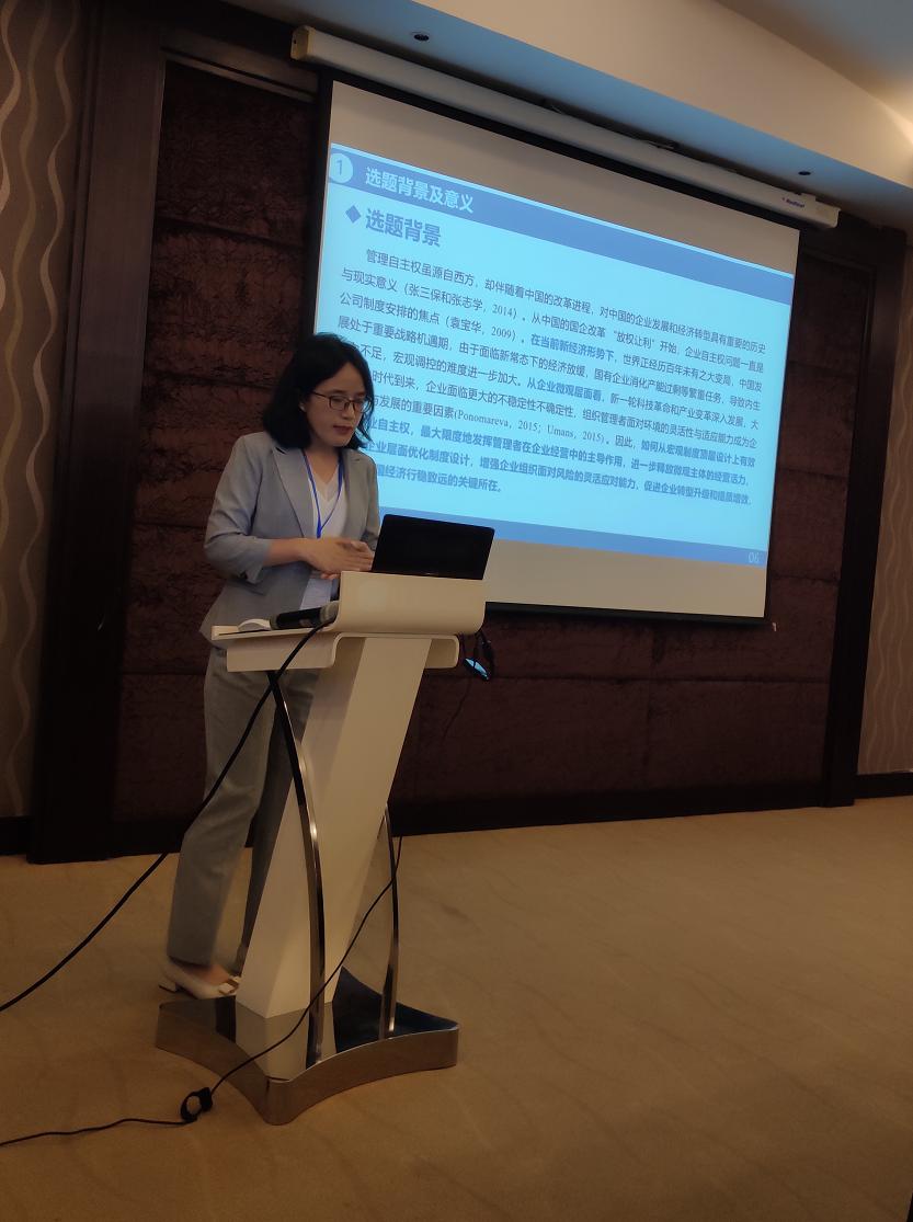 星空体育官网人力资源管理系副教授张静博士在分论坛报告了论文《管理自主权研究述评与中国新经济形势下研究启示》。张静博士从选题背景和选题意义、管理自主权前因研究、影响效应研究、测量方法和对中国当前经济发展的现实启示、存在的问题及展望几个方面做了报告,并认真听取专家意见。论文评阅人和与会代表对论文选题和前期工作给予了高度评价,并希望作者进一步修改完善,发表一篇高质量论文。