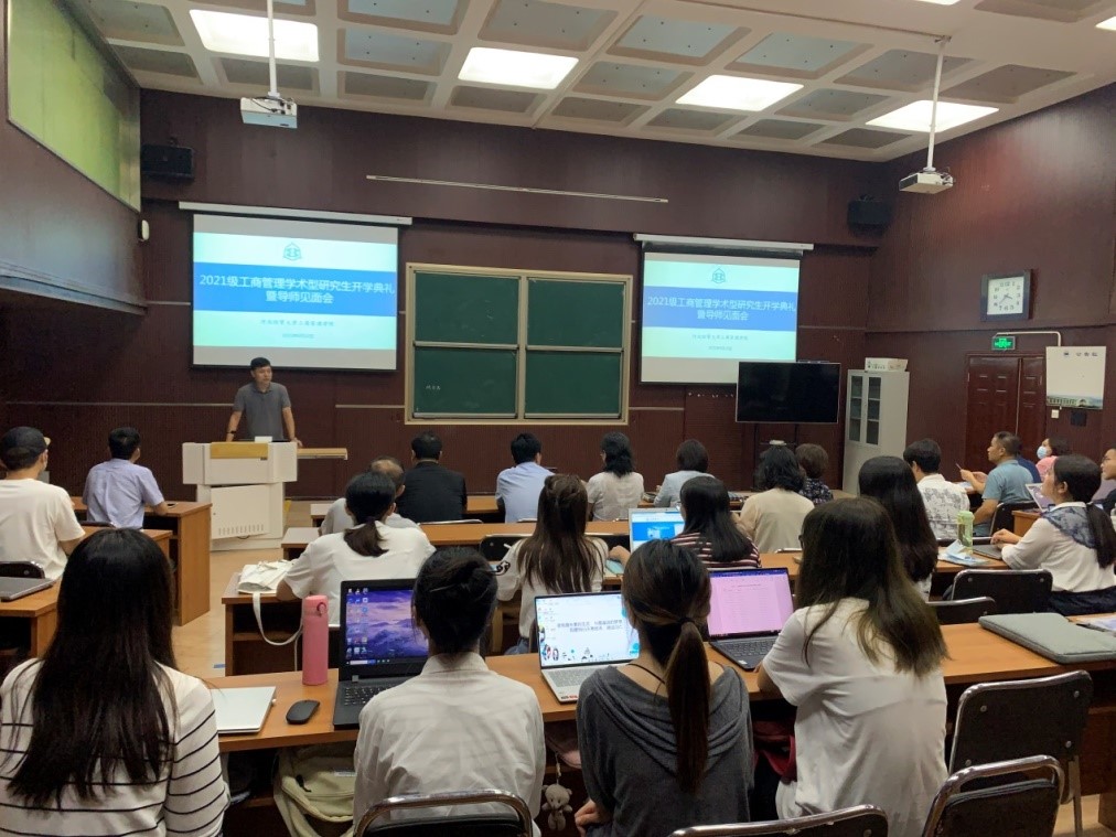 9月13日下午,星空体育官方网站于MBA1教室举行2021级学术型研究生开学典礼暨导师见面会。会议由星空体育官方网站副院长石晓飞主持,学院党委书记张霖、院长李桂荣、党委副书记范伟、副院长王胜洲、全体学术硕士导师及2021级学术型研究生参加。