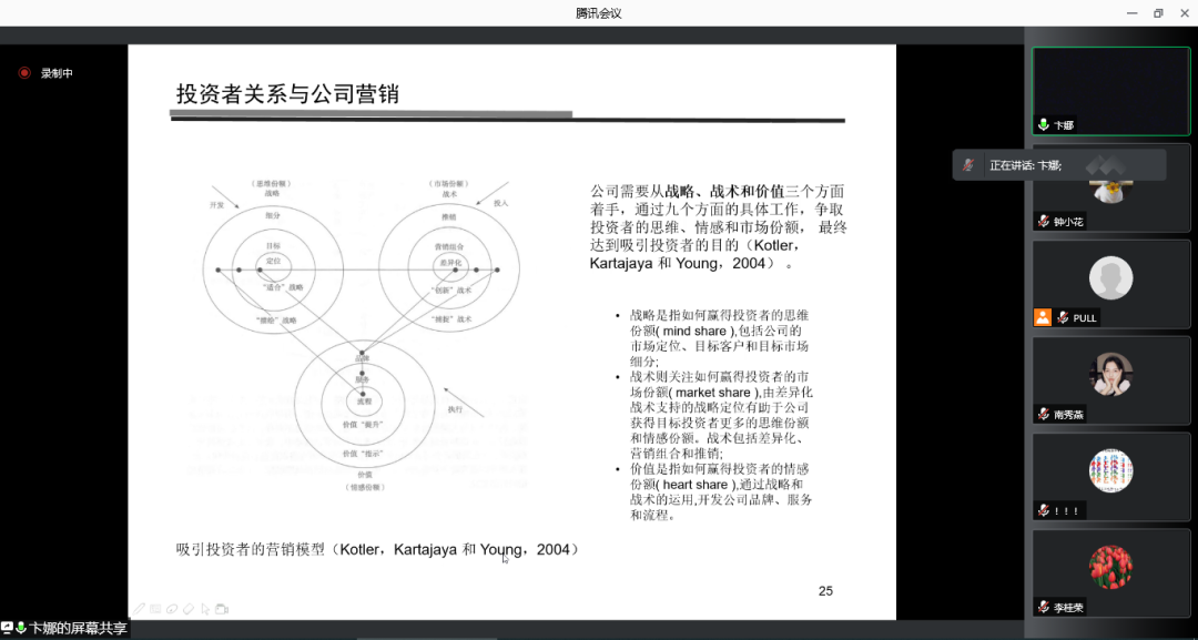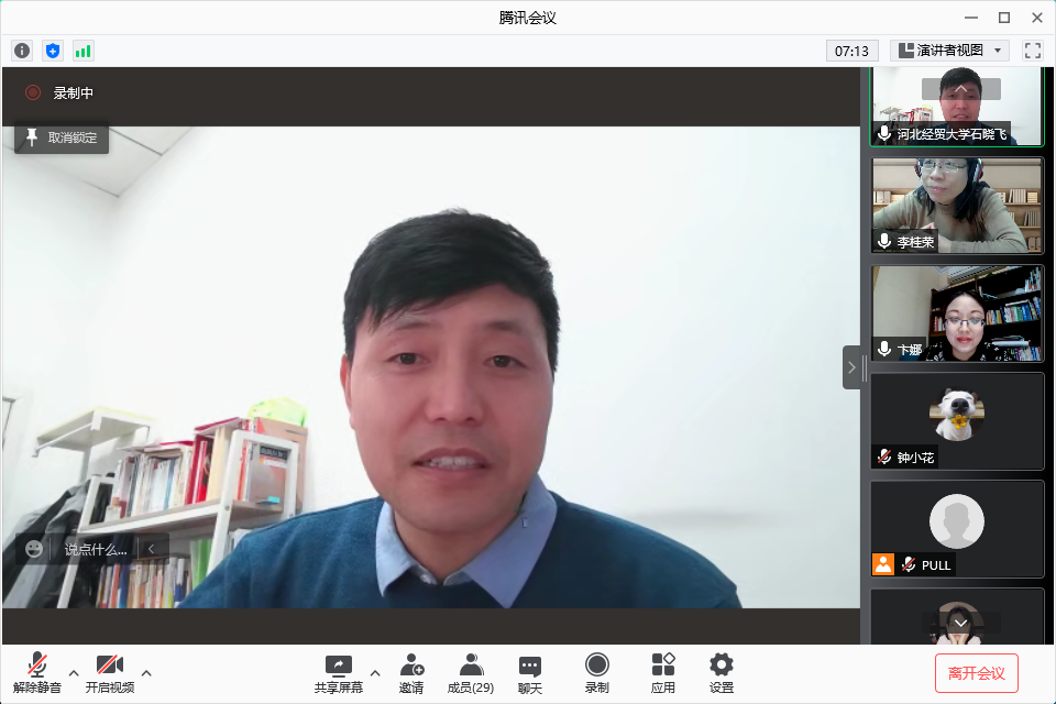 11月29日晚上,星空体育官方网站第四届公司治理与企业成长高端论坛在线上举行。河北地质大学管理学院卞娜博士应星空体育官方网站邀请,通过腾讯会议平台作题为“投资者关系管理的演进与变革”的学术报告。本次会议由星空体育官方网站副院长石晓飞主持,学院教师及研究生共100余人参加。