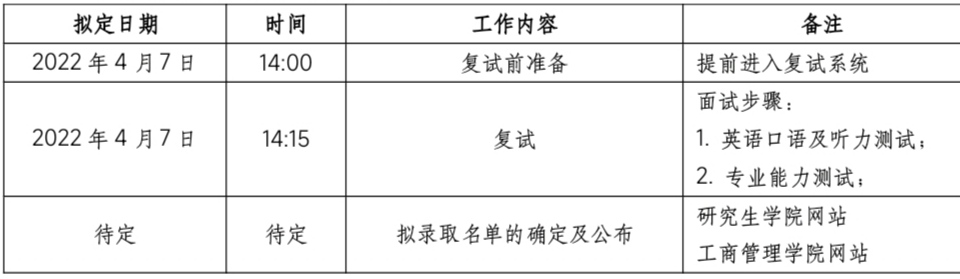 5. 调剂考生复试流程及时间安排